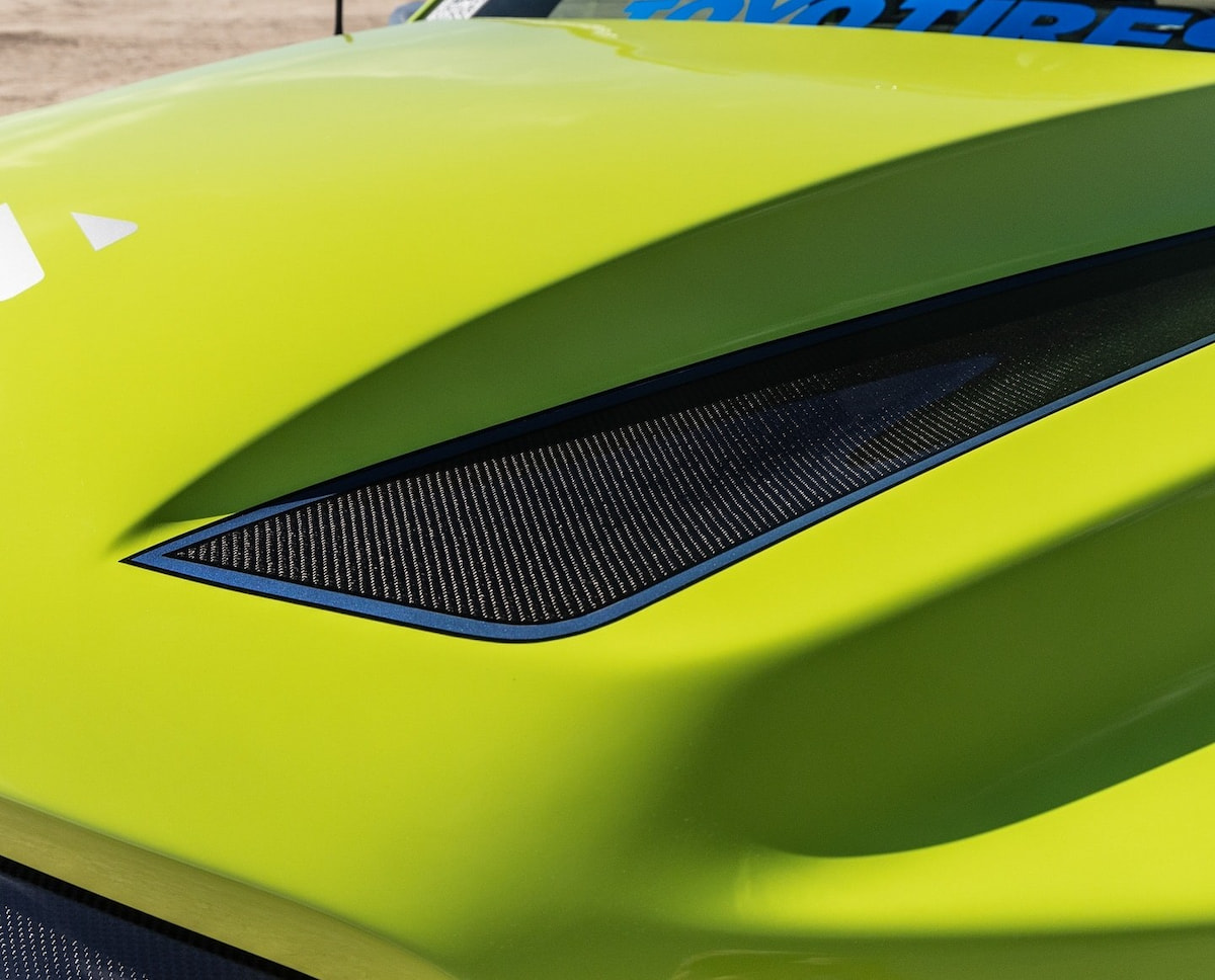 برای مهار و کنترل چنین قدرتی SPEC Design مجموعهای از بهینهسازیهای فنی جامع را در تمامی بخشهای خودرو به کار بسته است. کیت بدنه پهن و عضلانی که به طور کامل از فیبر کربن ساخته شده است، نه تنها وزن کلی خودرو را به شکل چشمگیری کاهش میدهد و به بهبود آیرودینامیک کلی کمک میکند، بلکه با برجسته کردن قوس چرخهای جلو و عقب و افزودن ورودیها و خروجیهای هوای تهاجمی، ظاهری به شدت خشن و مسابقهای به آن میبخشد.