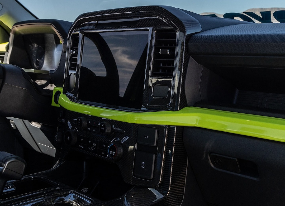 عرض ۳۳۵ میلیمتری لاستیکها، سطح تماس وسیعی با جاده فراهم میکند که برای انتقال ۱۰۰۰ اسب بخار قدرت به آسفالت و حفظ چسبندگی در پیچها کاملاً ضروری است. در نهایت یکی از جذابترین ویژگیهای فورد F-150 تیونینگ SPEC Design، برنامه جامع شخصیسازی آن است که به هر یک از ۲۵ خریدار این امکان را میدهد تا F-150 RS/X خود را با سلیقه شخصی خود تنظیم کنند. این برنامه میتواند شامل انتخاب رنگهای اختصاصی بدنه و کابین، مواد تریم داخلی، طراحیهای سفارشی صندلیها، و حتی تنظیمات جزئی در عملکرد خودرو باشد.