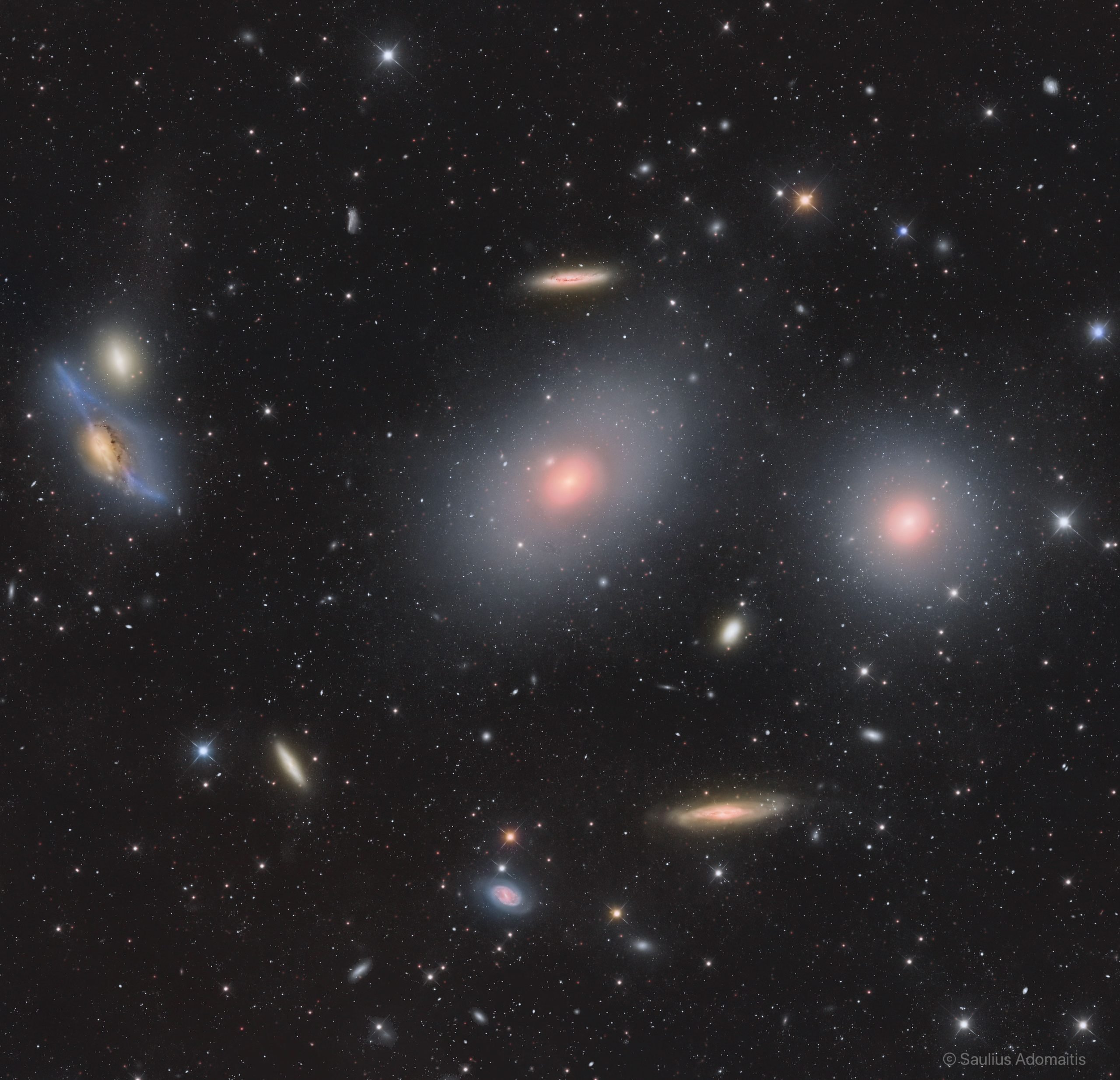 در قلب خوشه کهکشانی سنبله اجرام مسیه زیادی مثل کهکشانهای مارکاریان در چپ تصویر، کهکشان M86 در مرکز تصویر، کهکشان M84 در راست تصویر قرار دارد. در کنار آنها کهکشان مارپیچی NGC 4388 وجود دارد که در پایین سمت راست تصویر دیده میشود.