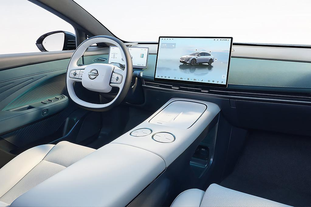 با گشودن در نیسان N7 و پا گذاشتن به فضای داخلی آن، بلافاصله با طراحی مدرن و آیندهنگرانه کابین مواجه میشویم که بر پایه سادگی و فناوری بنا شده است. موردی که در وهله اول جلب توجه میکند، حذف گسترده دکمههای فیزیکی و جایگزینی آنها با یک نمایشگر مرکزی بزرگ ۱۵.۶ اینچی لمسی است.